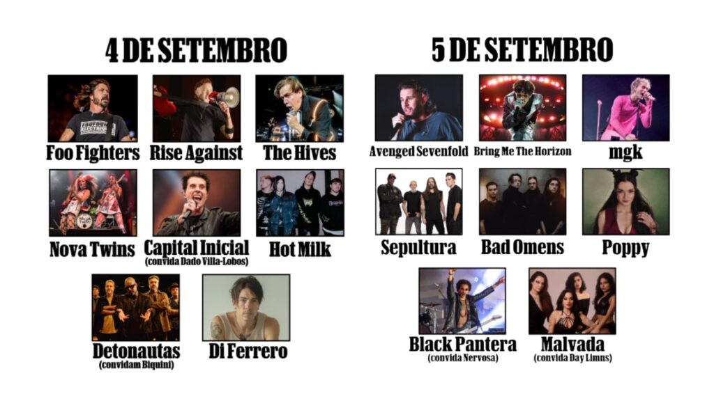 Avenged Sevenfold, Bring Me The Horizon, Machine Gun Kelly, Sepultura, Bad Omens, Poppy, Black Pantera com Nervosa e Malvada com Day Limns