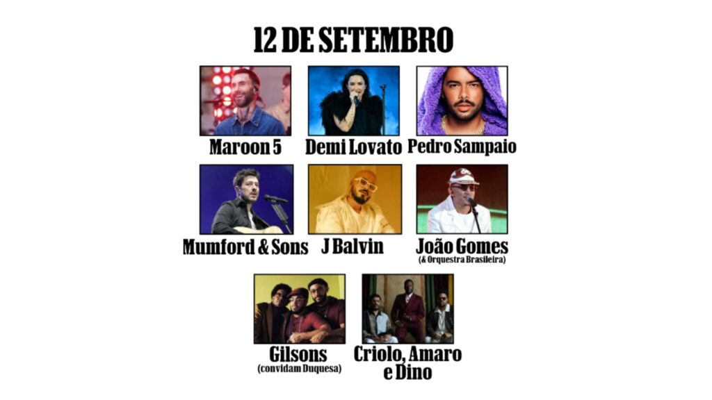 Maroon 5, Demi Lovato, Pedro Sampaio, Mumford & Sons, J Balvin, João Gomes com orquestra, além de Gilsons com Duquesa e Criolo, Amaro e Dino